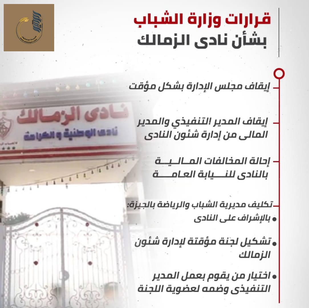 قررت وزارة الشباب والرياضة فى بيانها الصادر اليوم، إحالة المخالفات الماليه الواردة بالتقرير المقد